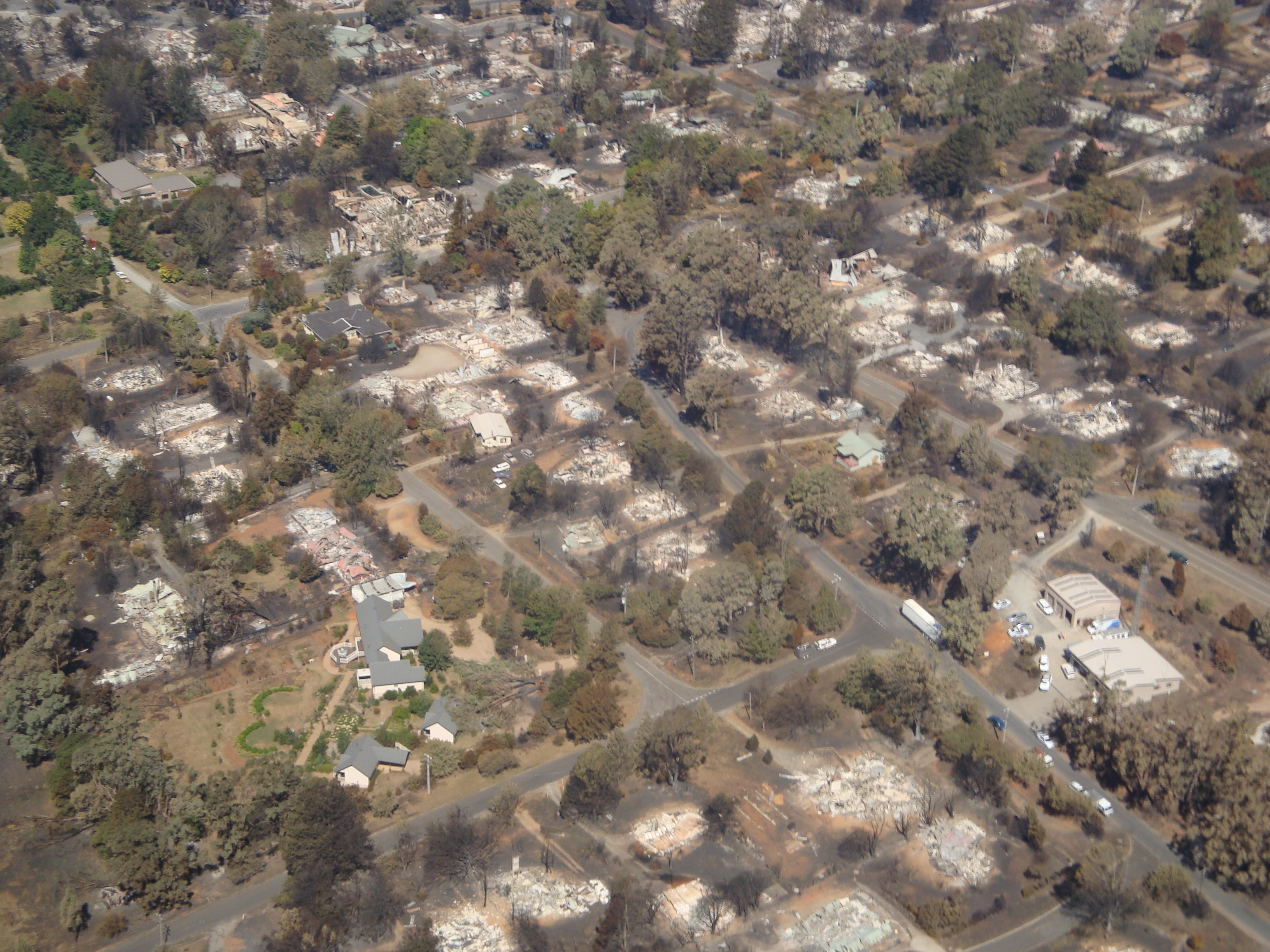 that flew to Marysville to look for sites for community hubs. We flew along the Marysville Rd, and I didn’t recognise the town, until we were in it. Landing on the oval, we were met by one of the local police. The town was still closed as the search went on for bodies. It was a sepia toned smoking ruin. As we drove around town, there were a number of incongruities, why had gardens remained intact, and houses gone?, play equipment survived, the elderly couple in a car driving around town, the last remaining residents, having survived the fire were not going